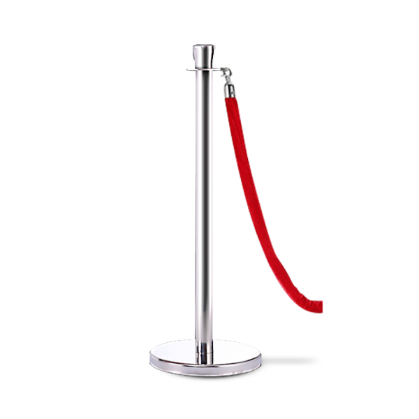 เสากั้นทางเดินสเตนเลสสีเงิน พร้อมสายคล้องสีแดง (1 ต้น)